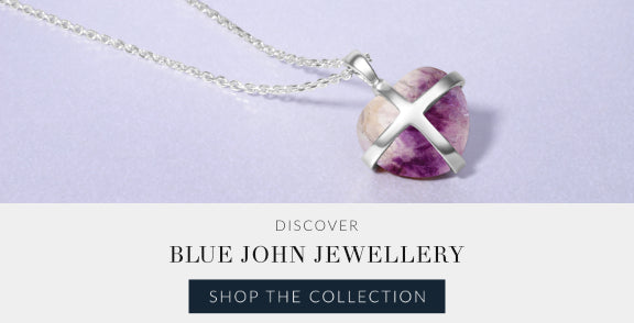 Discover our stunning range of Blue John jewellery precision set with the finest quality natural Blue John gemstone, sourced directly from the Treak Cliff Cavern, Castleton, Derbyshire. Famous for its distinctive colour ranging from soft lilac hues to bold purples and sunshine yellows, our jewellery collection celebrates one of the rarest minerals worldwide. Whether you are searching for that perfect gift or simply looking to indulge in our striking range of handmade Blue John rings, earrings, necklaces, charms and bracelets, our Blue John jewellery suits all occasions.
