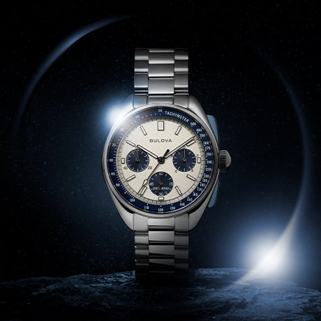 Inspired by Bulova's iconic chronograph that landed on the moon in 1971, the Lunar Pilot features style elements that pay homage to the original.