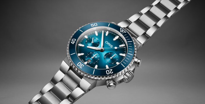 Earch armed with Oris' new Calibre 400 movement, every watch in this collection boasts an impressive lists of benefits including a five-day power reserve, anti-magnetic components, and an impressive 10 year warranty. Its self-sufficiency is mastered by a pair of mainspring barrels delivering a power reserve of 120 hours, a low-friction slide bearing system and a silicon anchor and escape wheel.