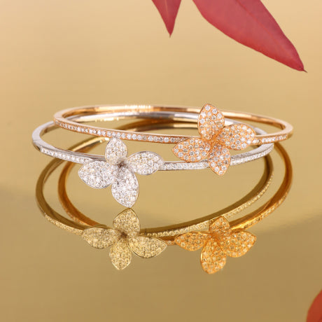 The Bon Ton collection, whose symbol is this very flower, has adapted, alongside women, to the changing times and society, without sacrificing the simplicity and the innate grace of its emblem. The stones’ patented ‘Bon Ton cut’ features soft faceted petals culminating in a cabochon pistil at the heart of the jewel.