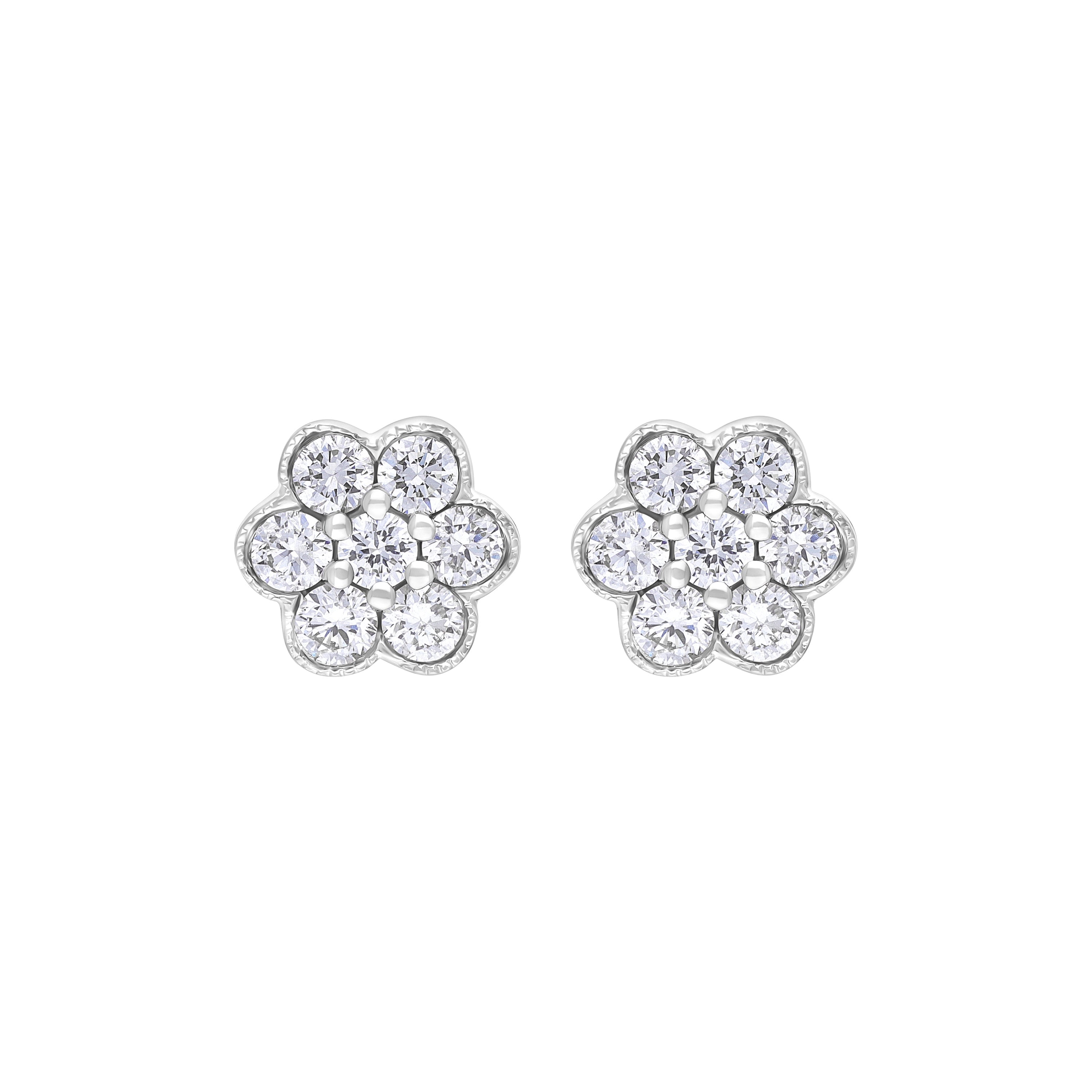 18ct White Gold 0.27ct Diamond Flower Cluster Stud Earrings, FEU-3030.