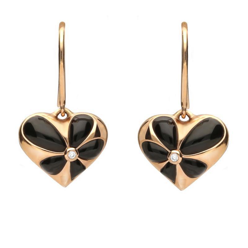 18ct Rose Gold Whitby Jet 0.025ct Diamond Flower Heart Two Piece Set S164