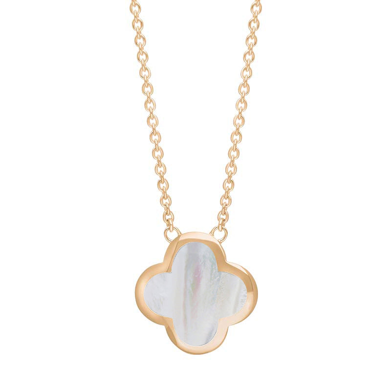 18ct Rose Gold White Mother of Pearl Bloom Large Four Leaf Clover Polished Edge Pendant