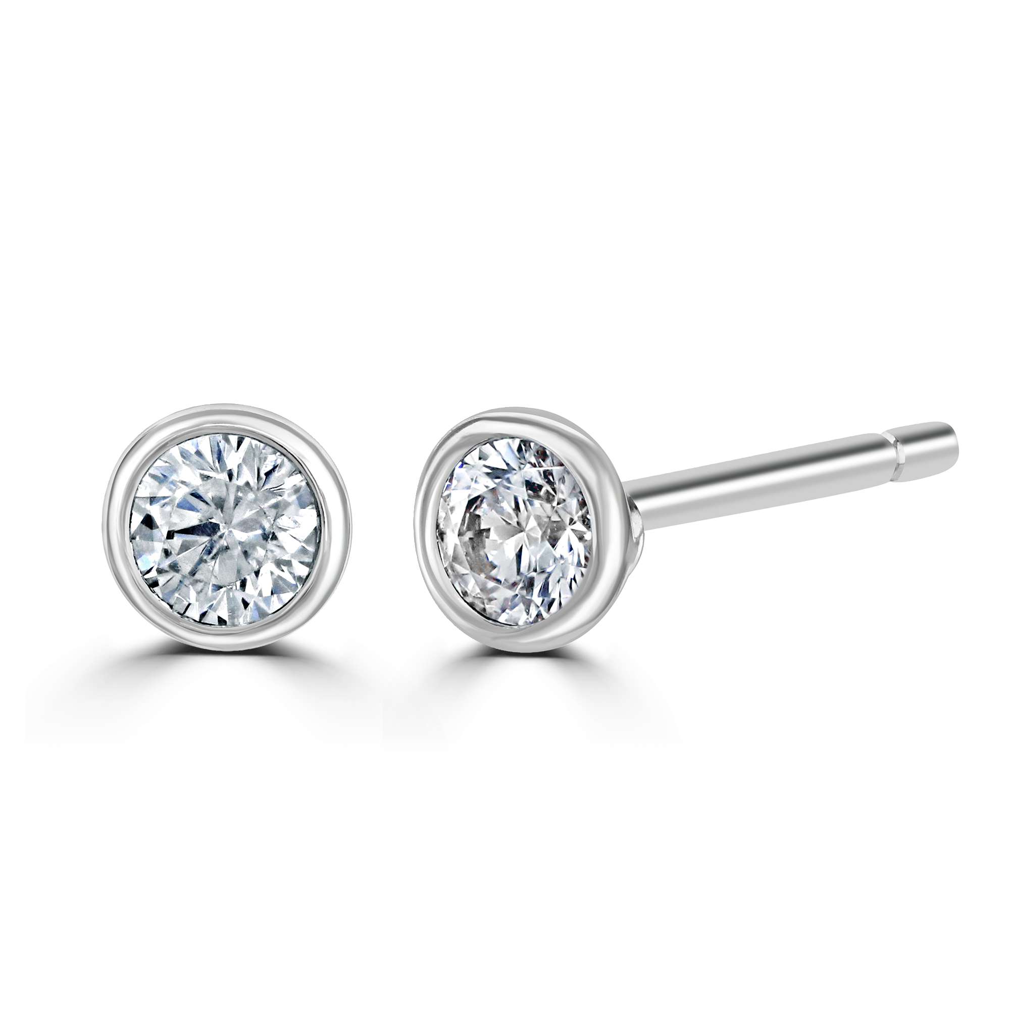 This pair of earrings features solitaire bezel-set round diamonds totalling 0.25ct in radiant 18ct white gold, offering a sleek and modern look. The simple yet refined design perfectly complements the brilliance of the central diamond, ensuring it takes centre stage. With its timeless beauty and clean lines, these earrings are perfect for anyone looking for a sophisticated, understated elegance. Whether worn for special occasions or as an everyday piece, it brings a classic touch of luxury to any outfit.