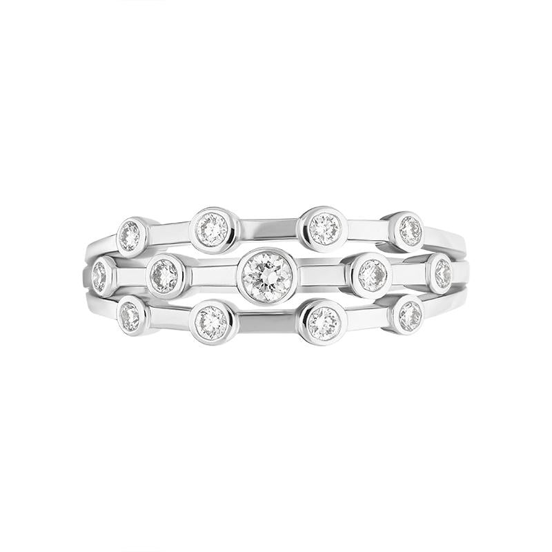 This striking diamond bubble ring features thirteen sparkling brilliant cut diamonds, with a total weight of 0.29cts. The diamonds adorn a modern, three row design and are rub-over set into a bubble design. Designed perfectly for everyday wear, this statement dress ring has a substantial solid 18ct white gold band and would make the perfect addition to any jewellery lover's collection.