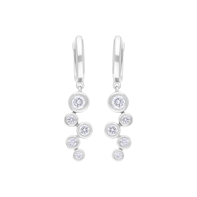 18ct White Gold 0.39ct 5 Stone Diamond Bubble Drop Hoop Earrings