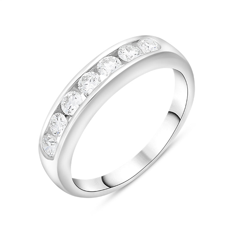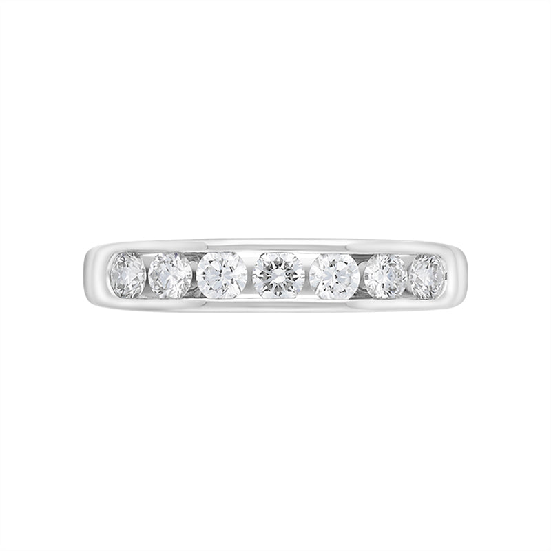 This stunning half eternity band ring features seven brilliant cut diamonds, with a total diamond weight of 0.45cts, which are channel set on a classic white gold band. Designed perfectly for everyday wear, this diamond set piece would make the perfect engagement or eternity ring to sit comfortably alongside a wedding band.