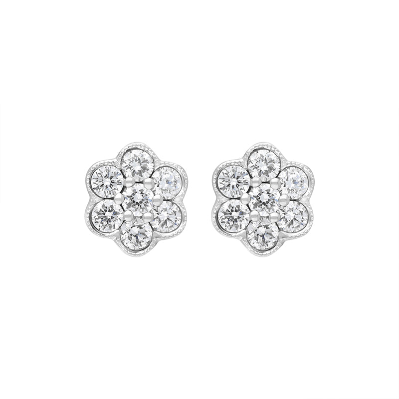 18ct White Gold 0.47ct Diamond Flower Cluster Stud Earrings - FEU-2690 (FEU-2690)