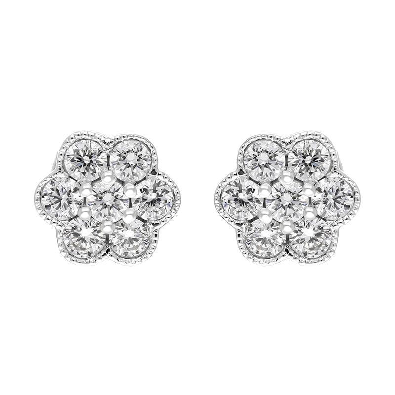 18ct White Gold 0.48ct Diamond Flower Cluster Stud Earrings, FEU-2274.