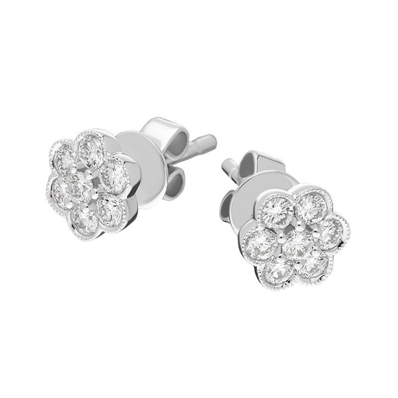 18ct White Gold 0.48ct Diamond Flower Cluster Stud Earrings - FEU-2274 (FEU-2274)