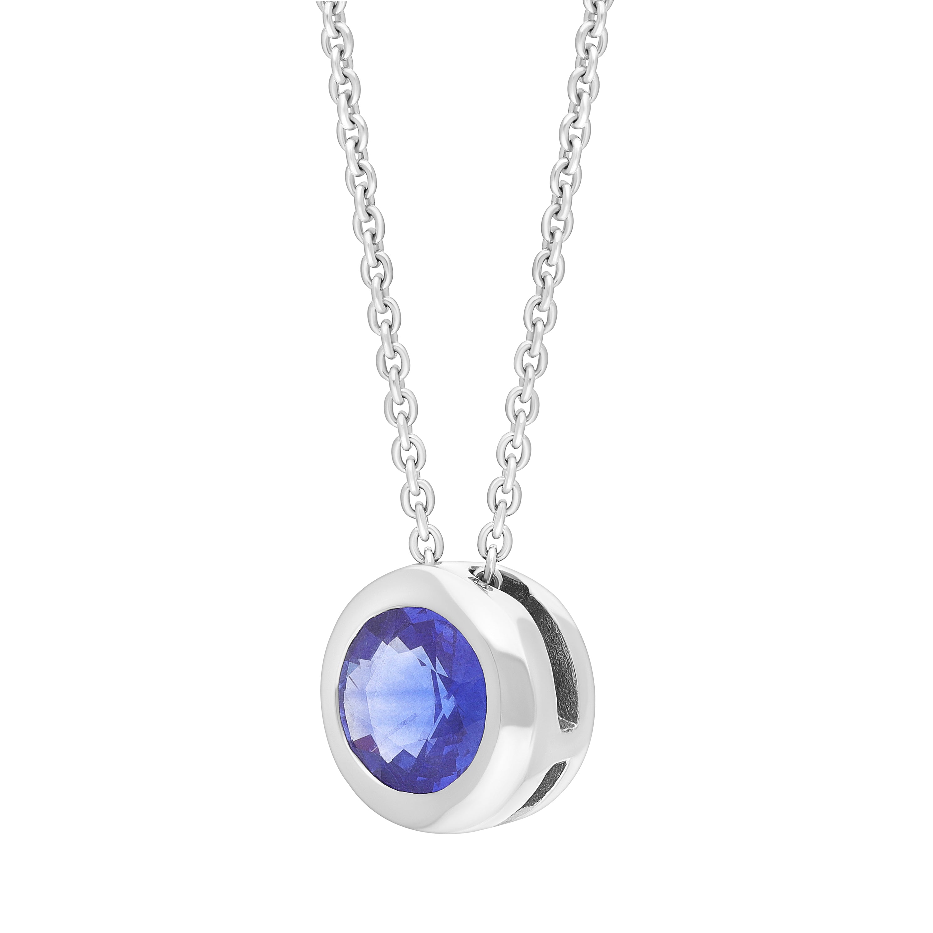 Elegant and simplistic, this 18ct white gold necklace features a stunning round cut sapphire, totalling 0.58cts. The precious gemstone is bezel set, allowing the maximum amount of light to travel through the stone and accentuating the vibrant tones. Designed perfectly for everyday wear, this gemstone set pendant is completed by a secure 18ct white gold chain.