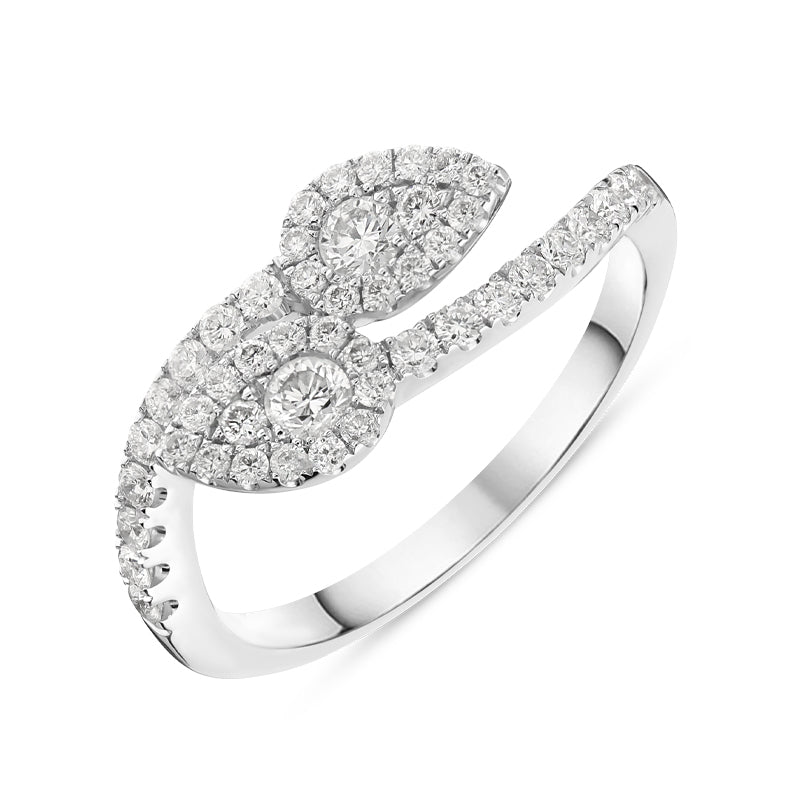 18ct White Gold 0.59ct Diamond Twist Leaf Ring D