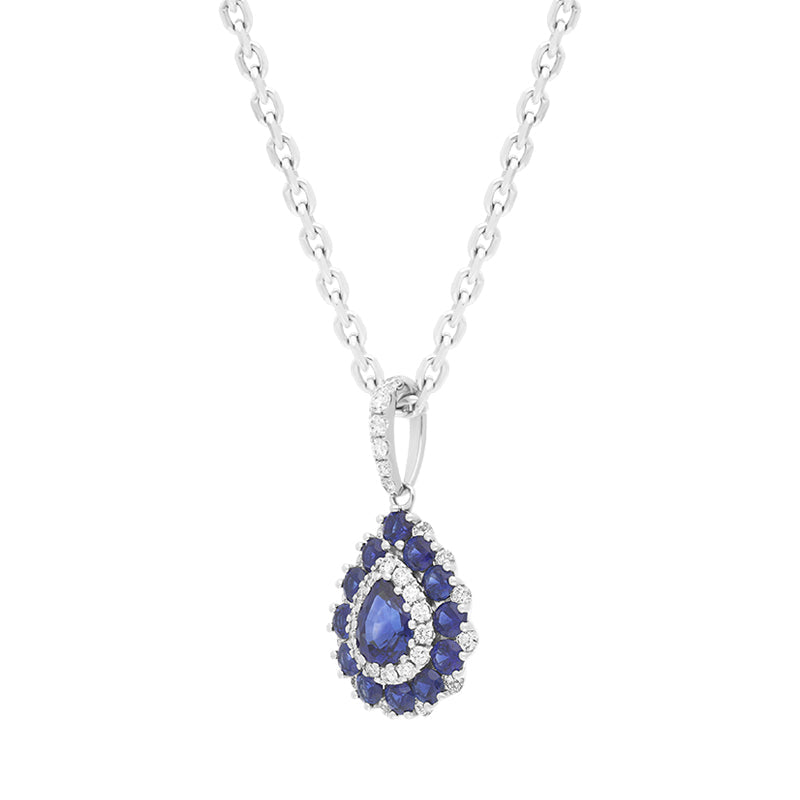 18ct White Gold 0.84ct Sapphire Diamond Cluster Pear Necklace - 12-55-385 (HBM-431)