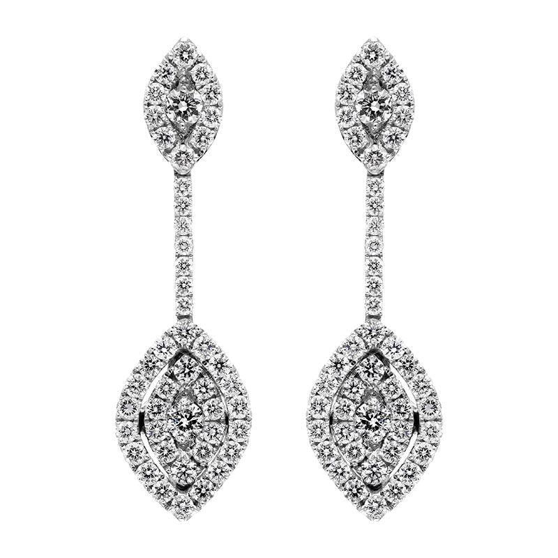 18ct White Gold 0.88ct Diamond Marquise Drop Earrings