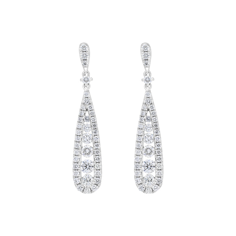 18ct White Gold 0.93ct Diamond Graduated Drop Earrings - FEU-2781 (FEU-2781)