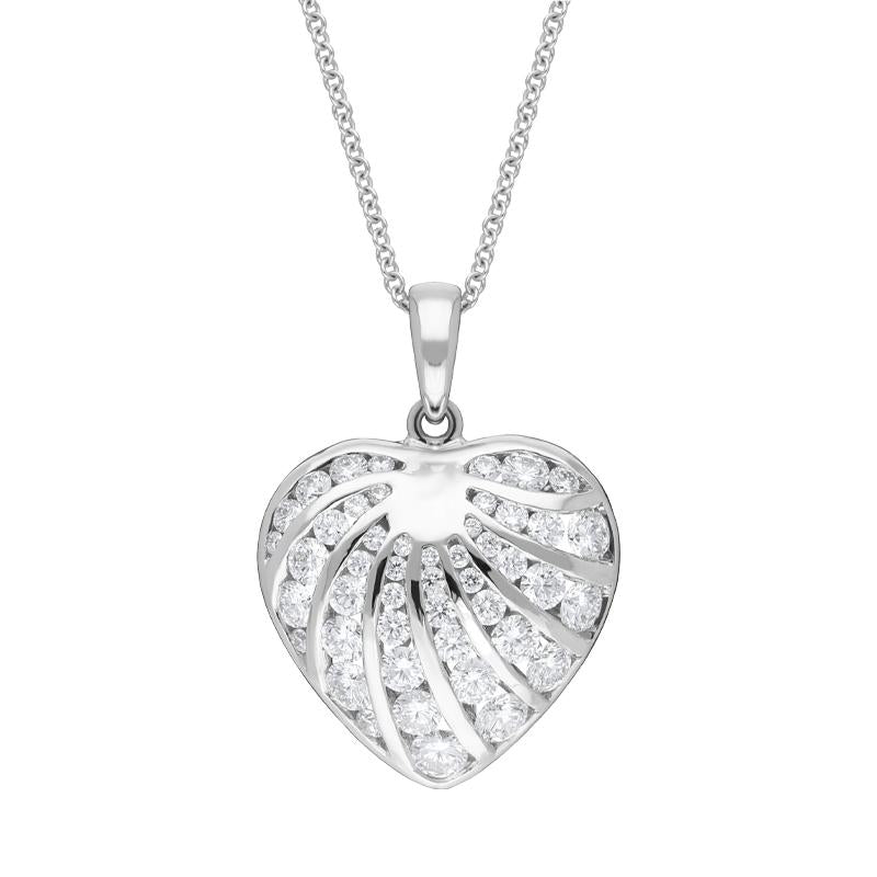 18ct White Gold 1.19ct Diamond Heart Necklace, FEU-2005.