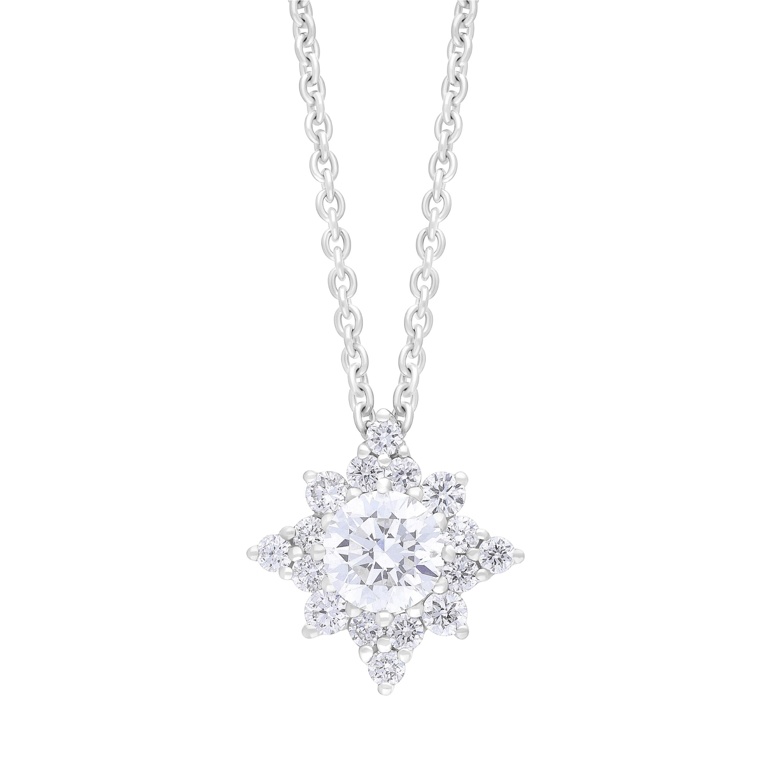 18ct White Gold .31 Diamond .19 Round Star Diamond Cluster Pendant & Chain - FEU-3052 (FEU-3052)