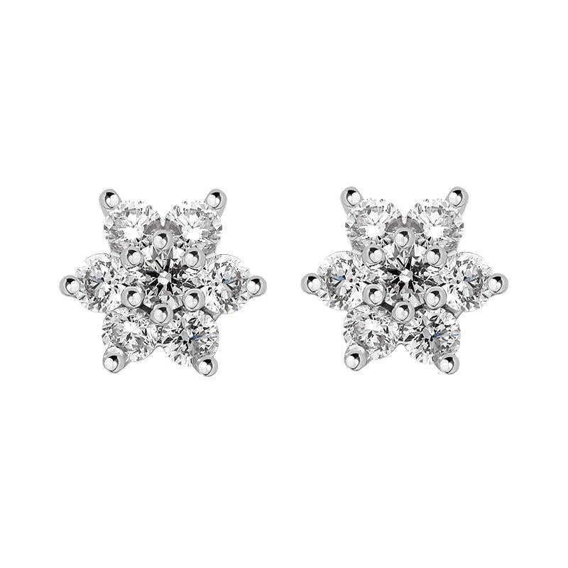 18ct White Gold Diamond Cluster Flower Stud Earrings - E2245 (DMD-245)