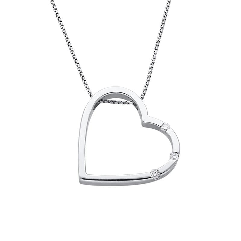 Elegant and luxurious, this stunning 18ct white gold necklace features a feminine open heart design which is embellished with three sparkling brilliant cut diamonds (0.06ct total). Designed perfectly for everyday wear, this diamond set piece is completed by an 18 inch 18ct white gold chain.