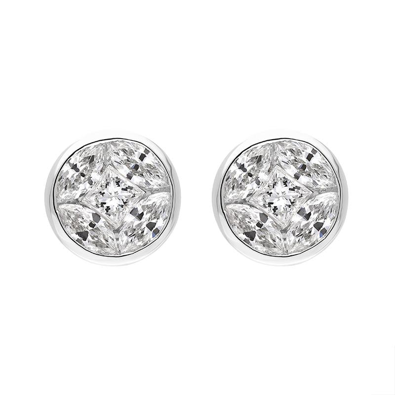 18ct White Gold Diamond Princess and Marquise Cut Cluster Stud Earrings