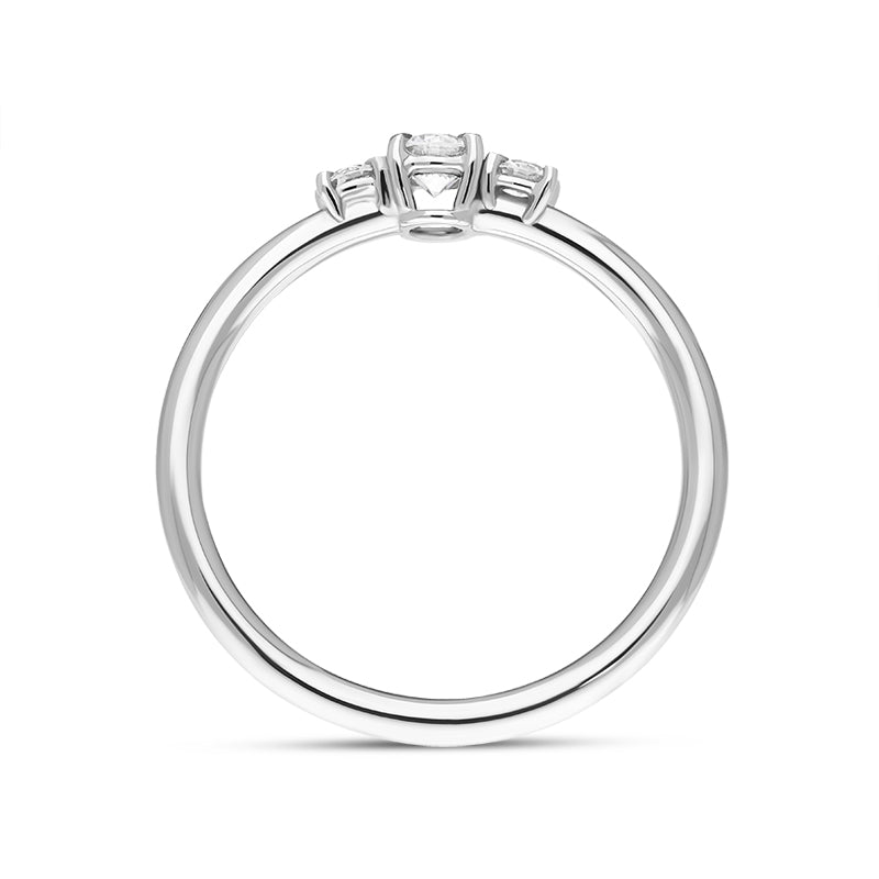 This stunning 18ct white gold ring features three round brilliant cut diamonds (centre 0.16ct, outer 0.13ct, total 0.29ct), claw set in 18ct white gold. The 18ct white gold band gives this beautiful ring a solid and substantial weight, making this a piece that will be treasured for generations to come.