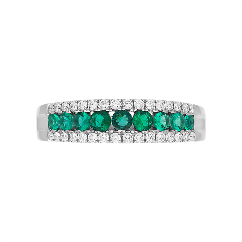18ct White Gold Emerald Diamond Nine Stone Tension Set Graduating Half Eternity Ring - FEU-2591 (FEU-2591)