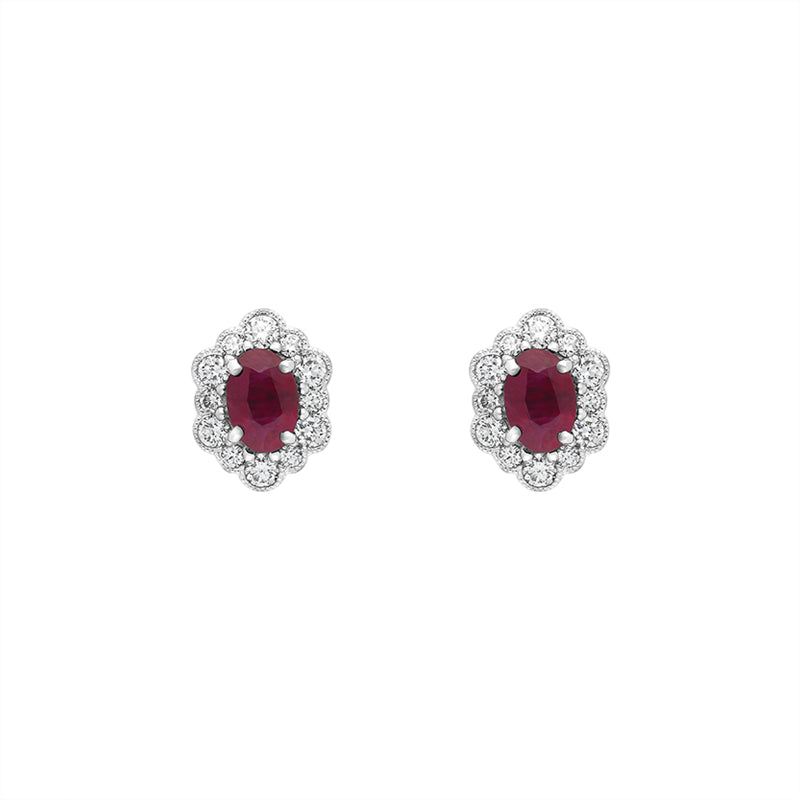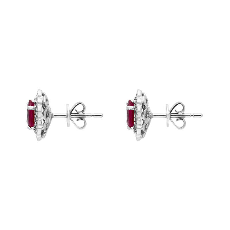 18ct White Gold Ruby Diamond Cluster Oval Stud Earrings - FEU-2542 (FEU-2542)