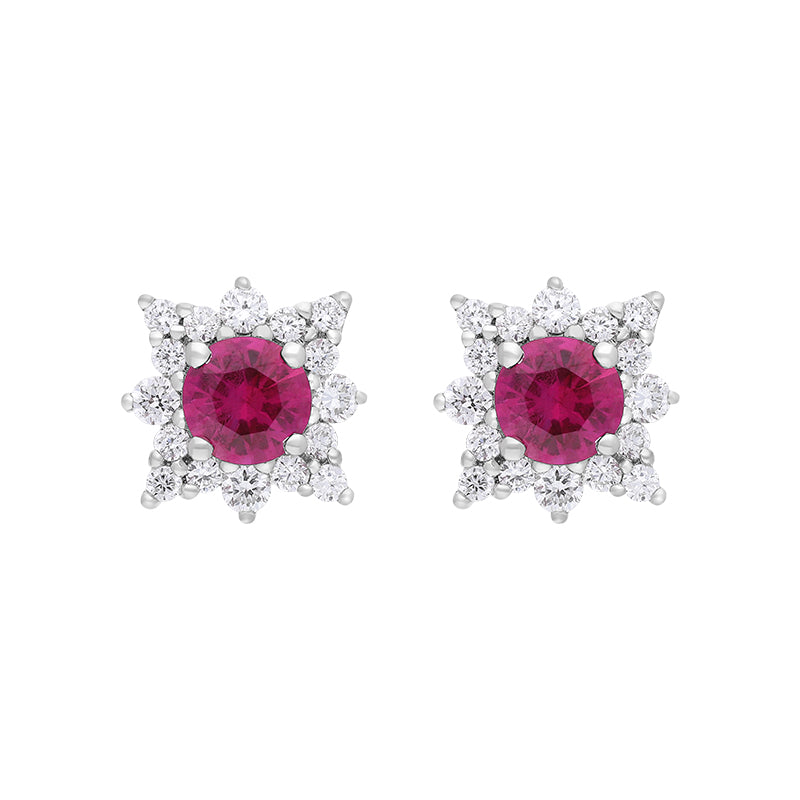 18ct White Gold Ruby Diamond Cluster Star Stud Earrings - FEU-2738 (FEU-2738)