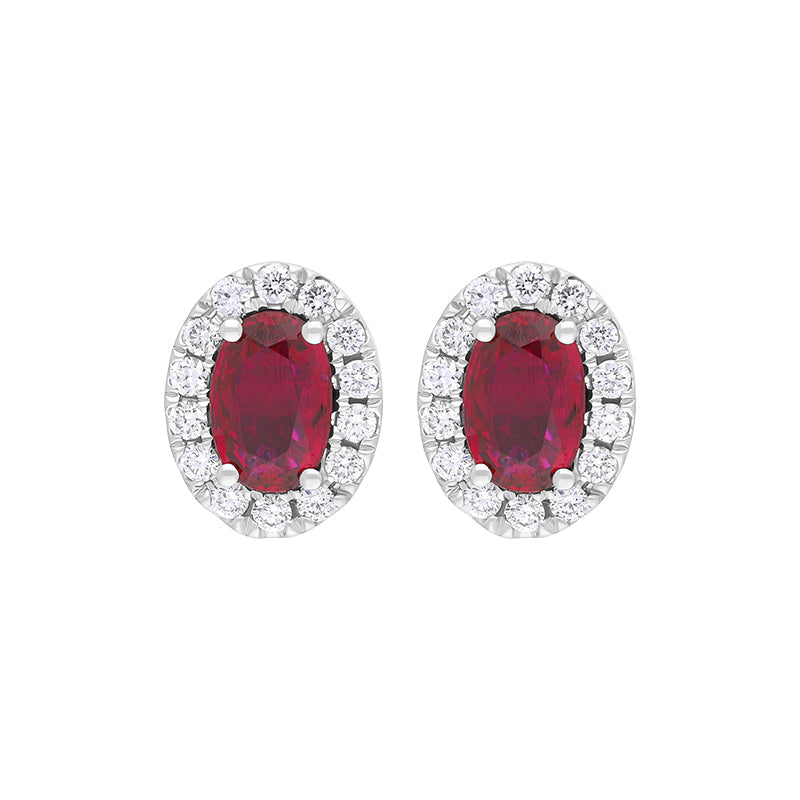 18ct White Gold Ruby Diamond Oval Cluster Stud Earrings - FEU-2825 (FEU-2825)