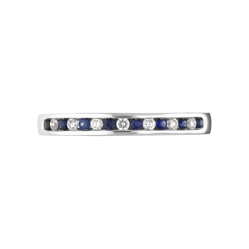 18ct White Gold Sapphire Diamond Half Eternity Ring, FEU-2465