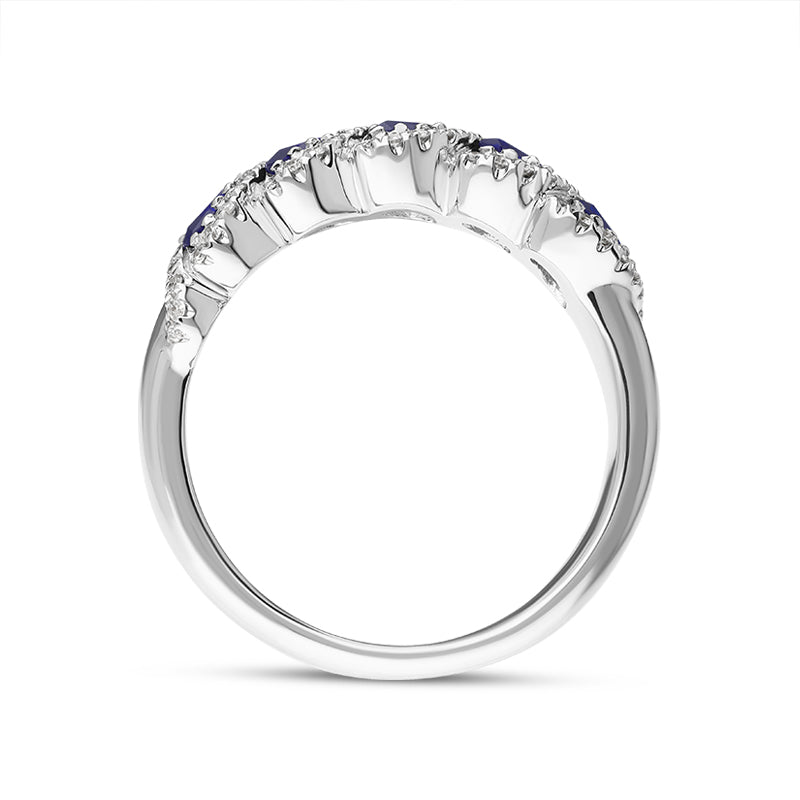 18ct White Gold Sapphire Diamond Marquise Five Stone Half Eternity Ring - FEU-2443 (FEU-2443)
