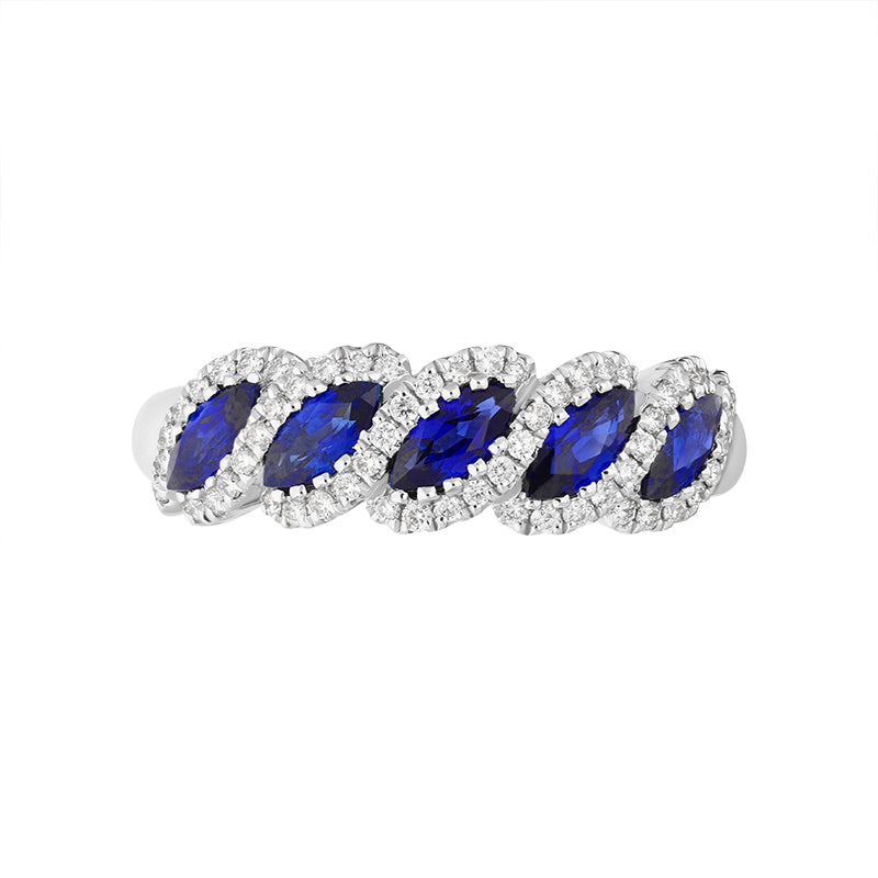 18ct White Gold Sapphire Diamond Marquise Five Stone Half Eternity Ring, FEU-2443