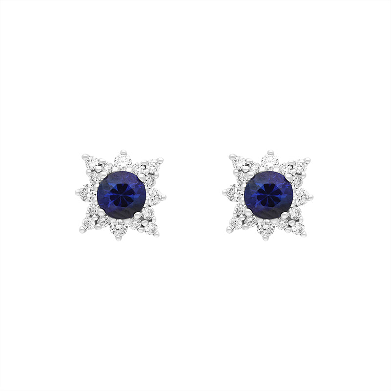 18ct White Gold Sapphire Diamond Round Cut Star Cluster Stud Earrings - FEU-2226 (FEU-2226)