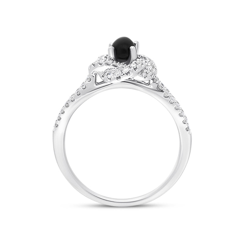 18ct White Gold Whitby Jet 0.39ct Diamond Knot Ring - R1265 (DMD-176/I)