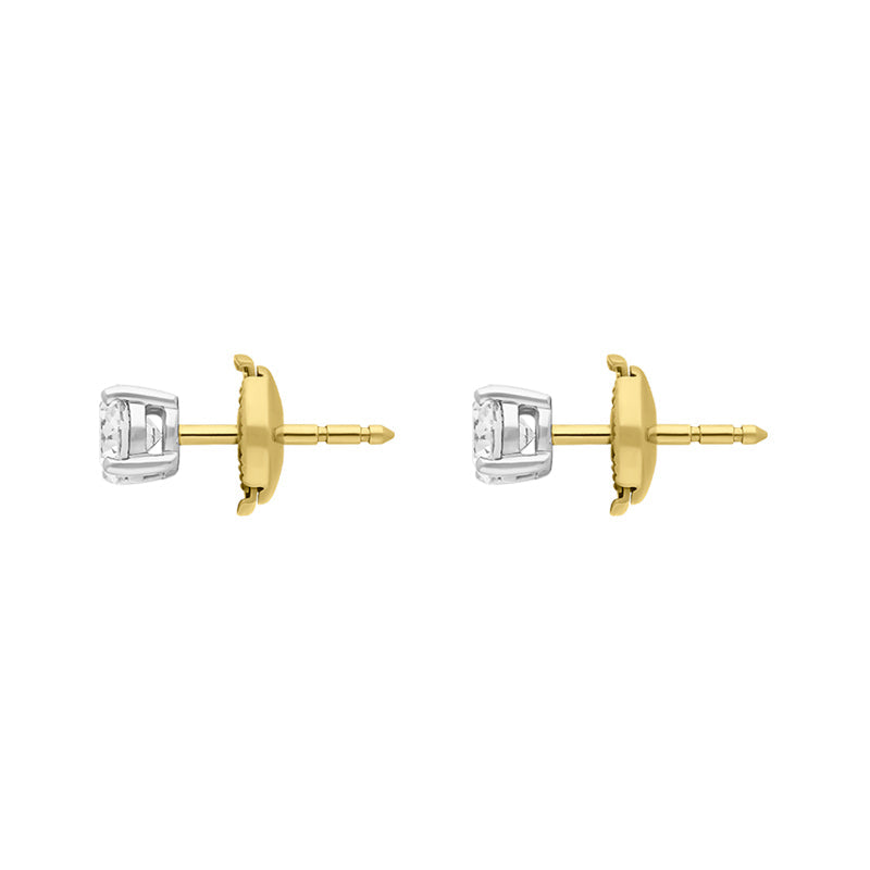 18ct White and Yellow Gold 1.03ct Diamond Solitaire Brilliant Cut Stud Earrings, FEU-2252.
