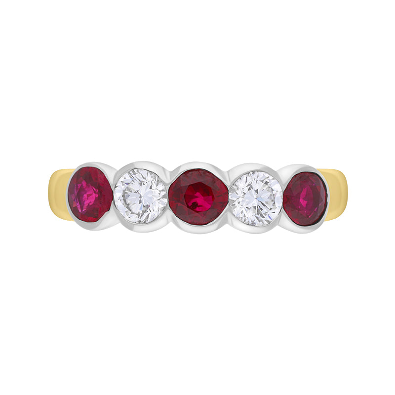18ct Yellow and White Gold Ruby Diamond Rubover Set Eternity Ring