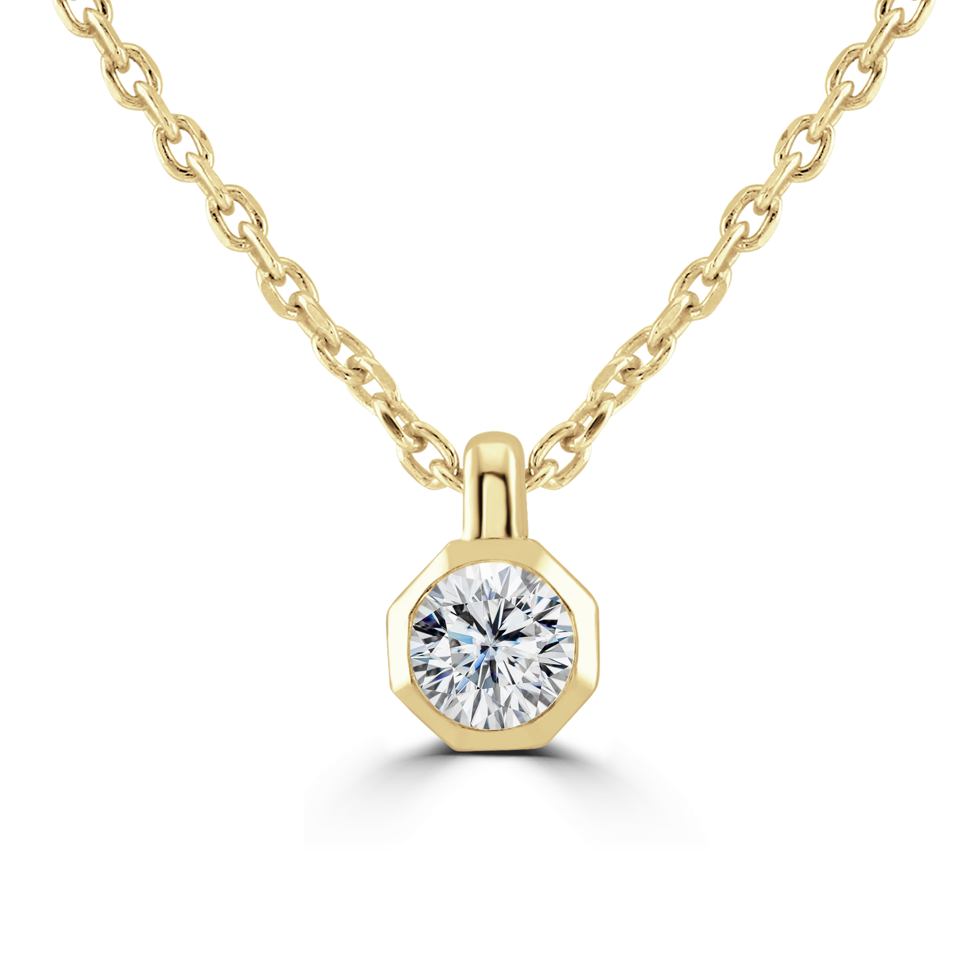 18ct Yellow Gold 0.15ct Diamond Solitaire Octagonal Necklace - PND283R15 (BNN-644)