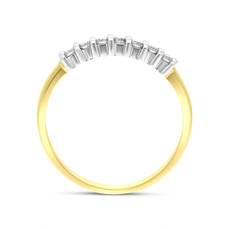 This classic half eternity band ring features seven brilliant cut diamonds (0.17ct total), which are bar set in 18ct white gold on a classic 18ct yellow gold band. Designed perfectly for everyday wear, this diamond set piece would make the perfect engagement or eternity ring to sit comfortably alongside a wedding band.