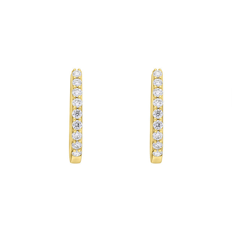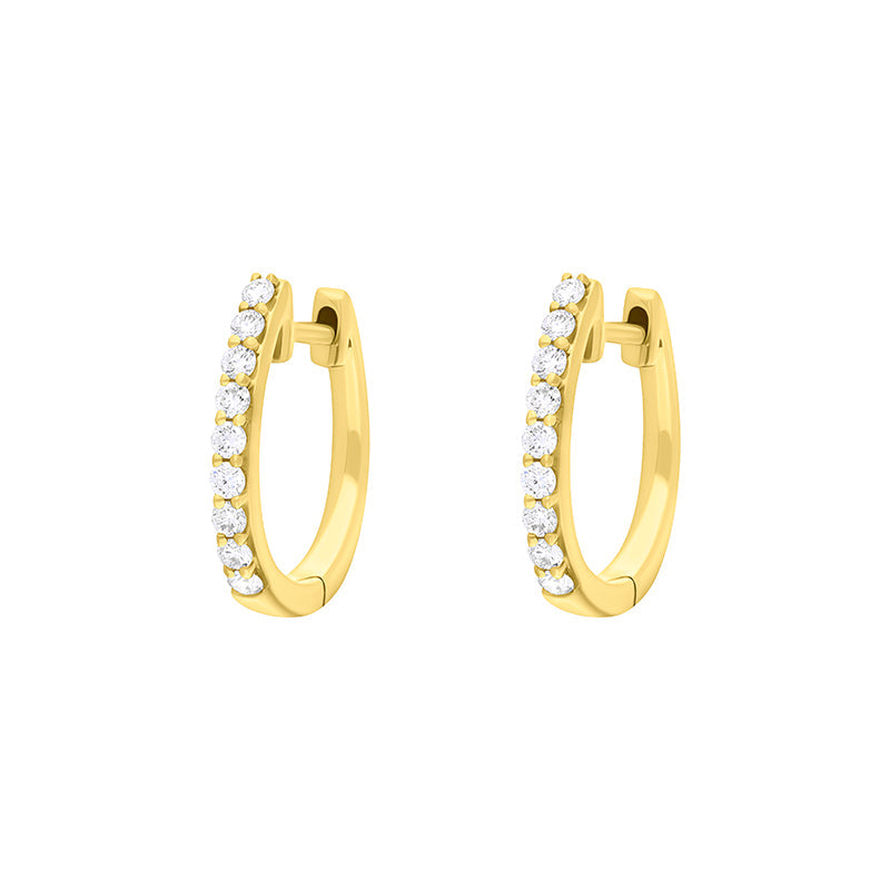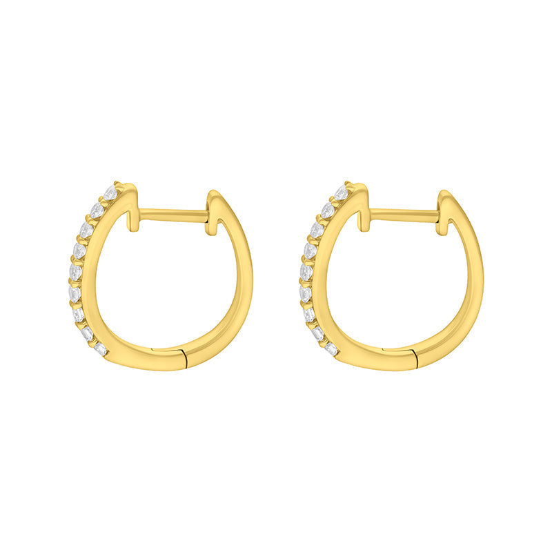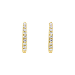 Feminine 18ct yellow gold hoop earrings featuring brilliant cut diamonds (0.21ct total). Designed perfectly for everyday wear, the earrings are designed for pierced ears and are hinged for opening and closing.