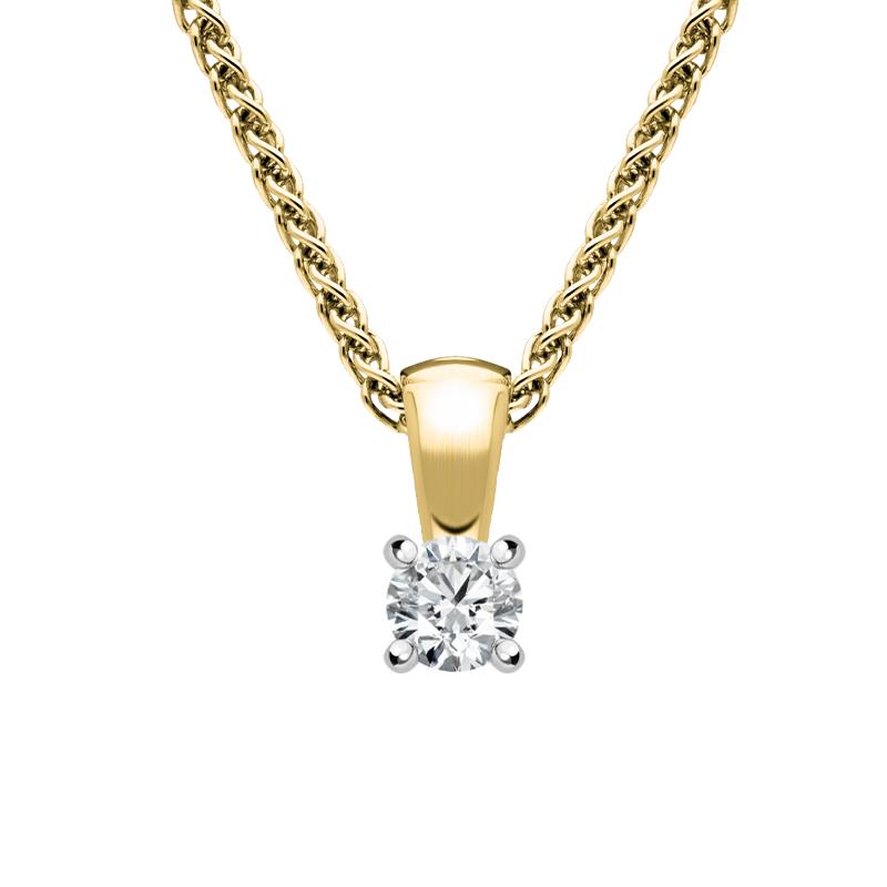 18ct Yellow Gold 0.28ct Diamond Brilliant Cut Solitaire Necklace, P1738.