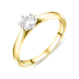 Classically beautiful, this 18ct yellow gold ring features a 0.33ct round brilliant cut diamond, chosen for its fire and brilliance. The white diamond is claw set in 18ct white gold to allow the maximum amount of light to illuminate it.