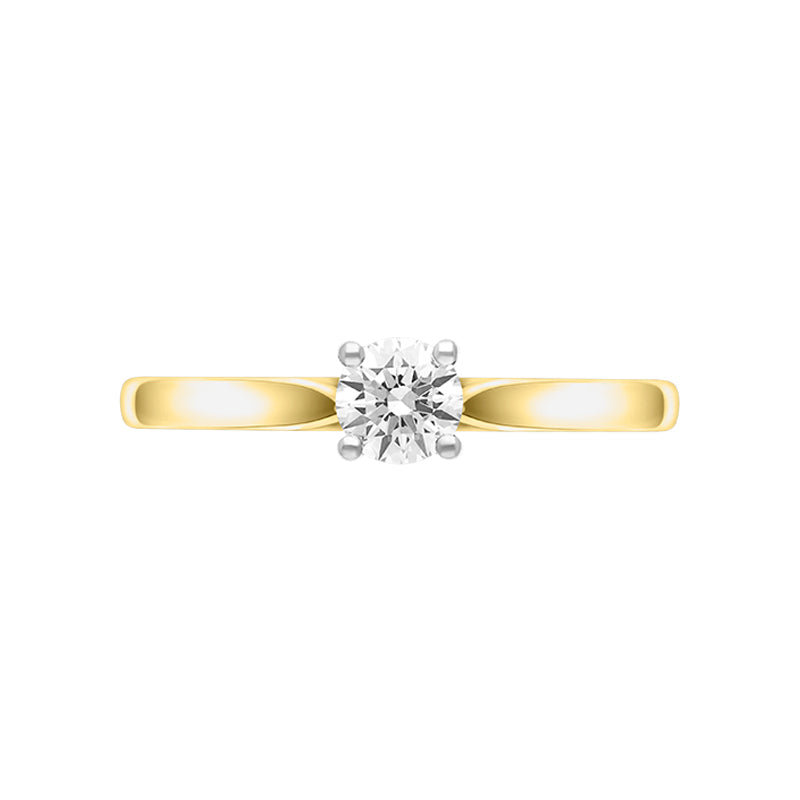 Classically beautiful, this 18ct yellow gold ring features a 0.40ct round brilliant cut diamond, chosen for its fire and brilliance. The white diamond is claw set in 18ct white gold to allow the maximum amount of light to illuminate it.