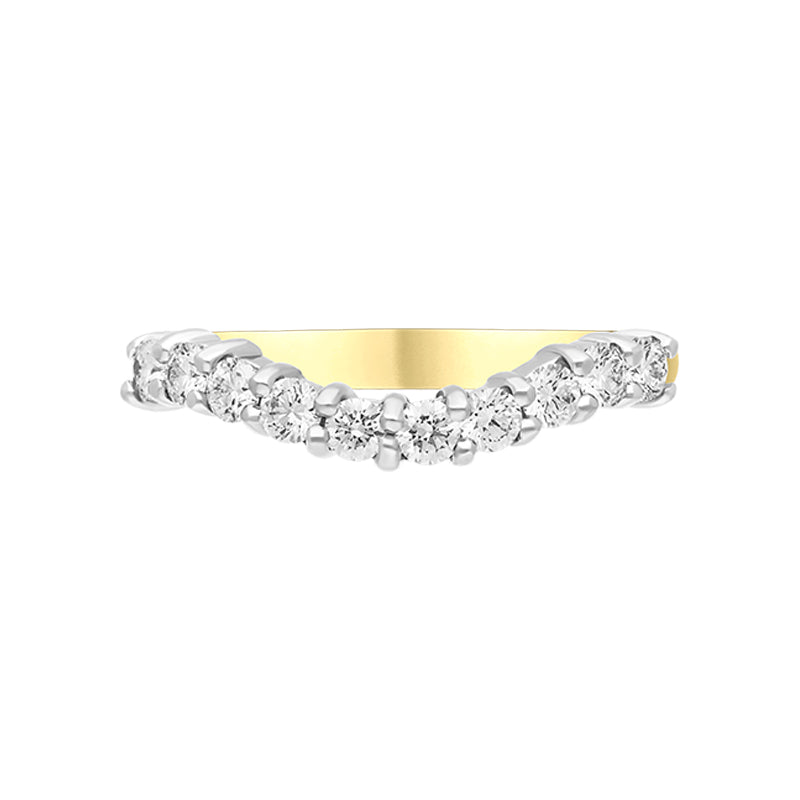 This stunning U-shape half eternity band ring features ten brilliant cut diamonds, with a total diamond weight of 0.43ct, set in 18ct white gold and presented on a classic 18ct yellow gold band. Designed perfectly for everyday wear, this diamond set piece would make the perfect engagement or eternity ring to sit comfortably alongside a wedding band.