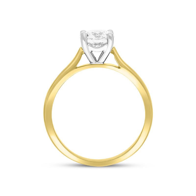 Elegant and luxurious, this 18ct yellow gold ring features a stunning solitaire brilliant cut diamond, totalling 0.50cts. The precious gemstone is set within 18ct white gold, allowing the maximum amount of light to travel through the stone. Designed perfectly for everyday wear, this diamond set piece would make the perfect engagement ring to sit comfortably alongside a wedding band.