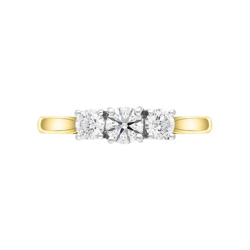 This stunning 18ct yellow gold ring features three sparkling brilliant cut diamonds, totalling 0.50cts. The precious gemstones are claw set within 18ct white gold, accentuating the diamond's sparkle. Designed perfectly for everyday wear, this diamond set piece would make the perfect engagement ring to sit comfortably alongside a wedding band.