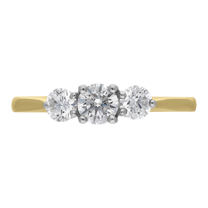 18ct Yellow Gold 0.76ct Diamond Brilliant Cut Trilogy Ring