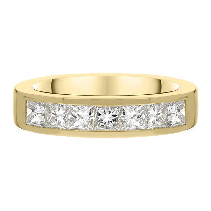 18ct Yellow Gold 1.01ct Diamond Princess Cut Wedding Half Eternity Ring - FEU-1666 (FEU-1666)