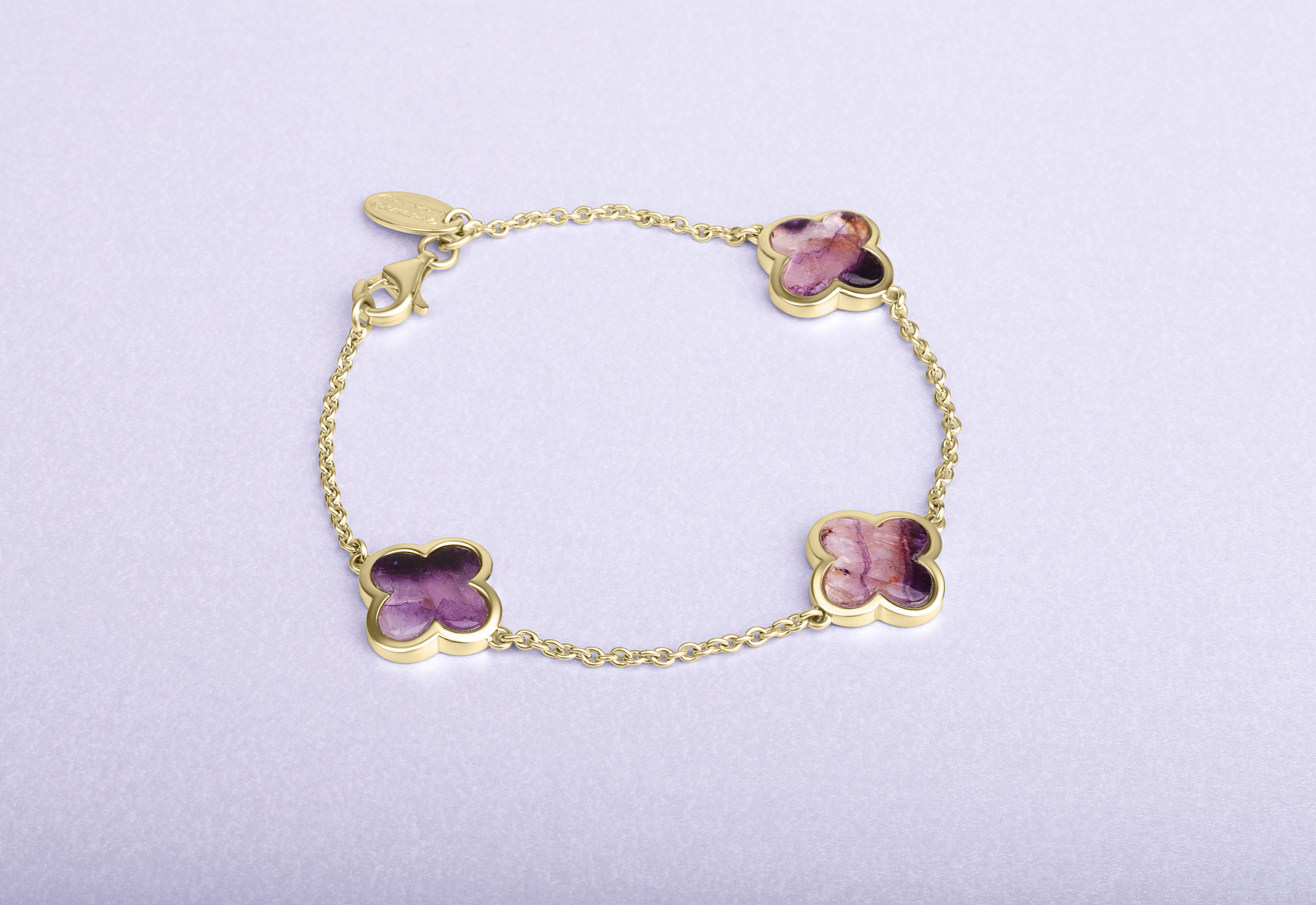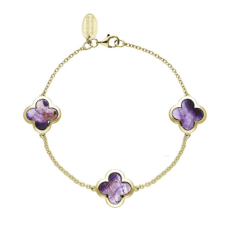 18ct Yellow Gold Blue John bloom Four Leaf Clover Chain Bracelet