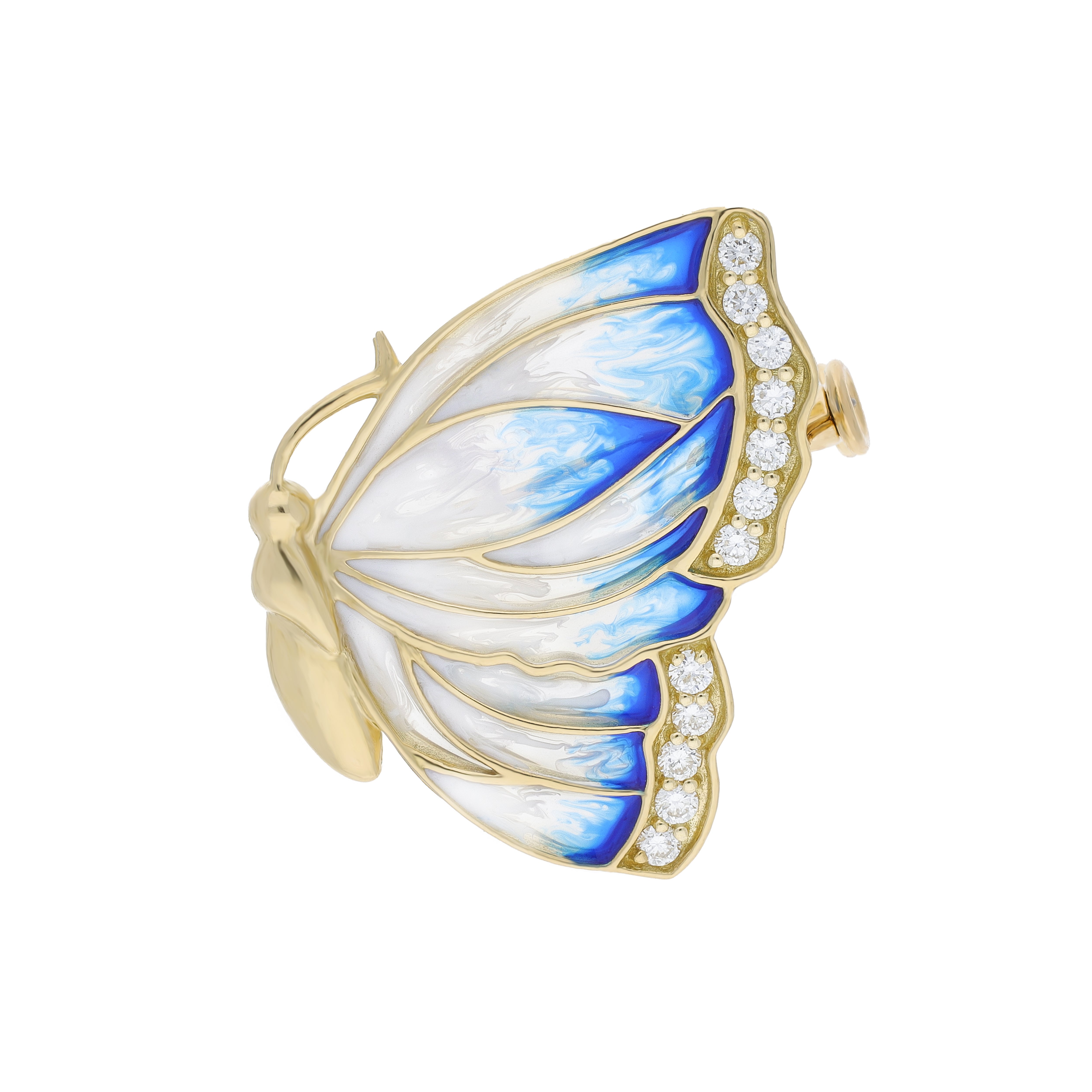 18ct Yellow Gold Blue & Grey Enamel with Diamond Butterfly Wing Brooch - M386 (CHS-102)