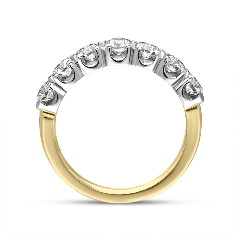 This stunning 18ct yellow gold ring features seven round brilliant cut diamonds totalling 1.00ct set in 18ct white gold. The 18ct yellow gold band gives this beautiful ring a solid and substantial weight, making this a piece that will be treasured for generations to come.